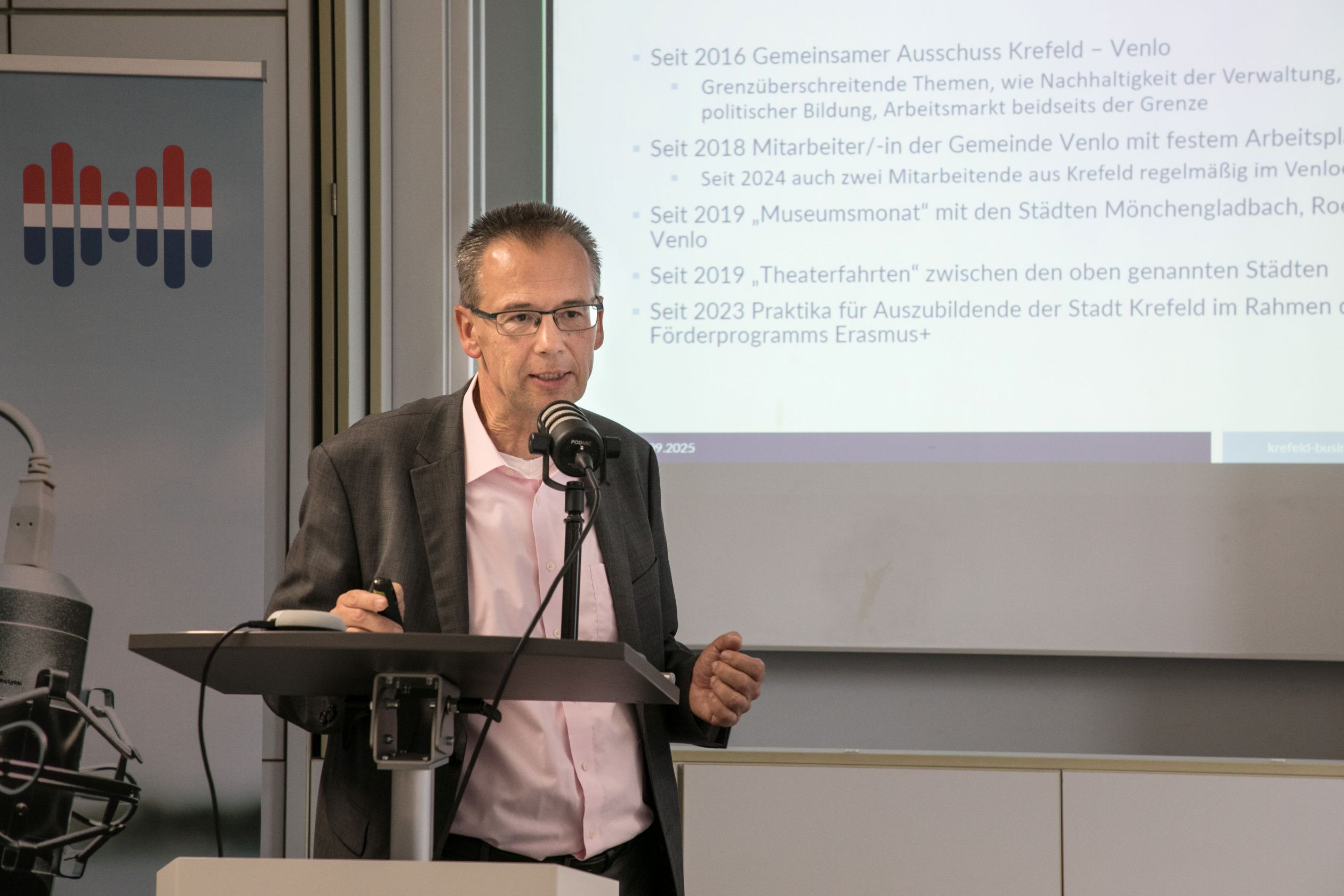 Die Geschichte dieser Städtepartnerschaft und die zahlreichen aktuellen gemeinsamen Projekte stellte Eckart Preen in seiner Eigenschaft als Dezernent für Internationales jetzt bei der Jahrestagung der Bundesgemeinschaft für deutsch-niederländische Zusammenarbeit (BDNZ) in Münster vor.