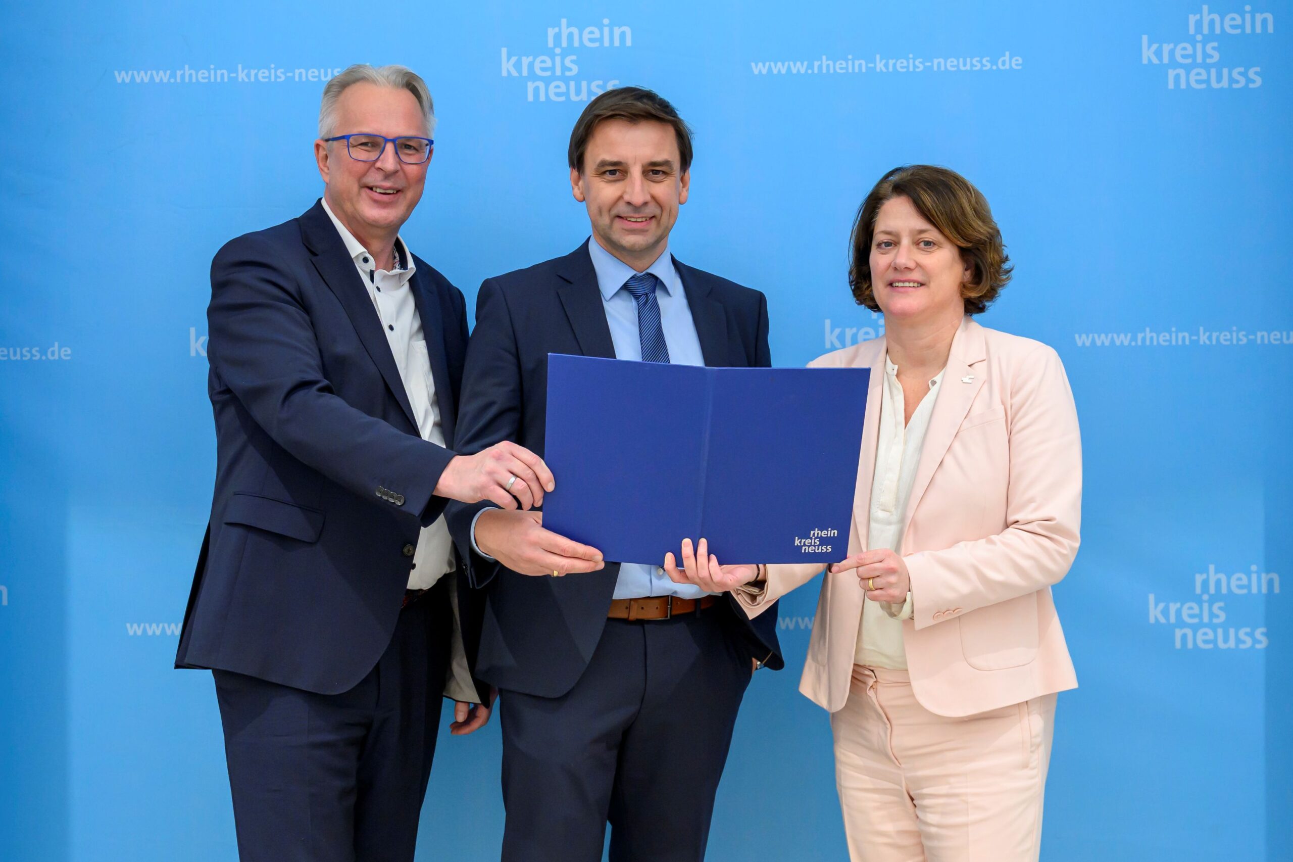 Rhein-Kreis Neuss fördert Wasserstoff-Hub (von links): Kreisdirektor Dirk Brügge, Vorstandsvorsitzender Dr. Dieter Ostermann und Landrätin Katharina Reinhold. | Foto: W. Walter/ Rhein-Kreis Neuss