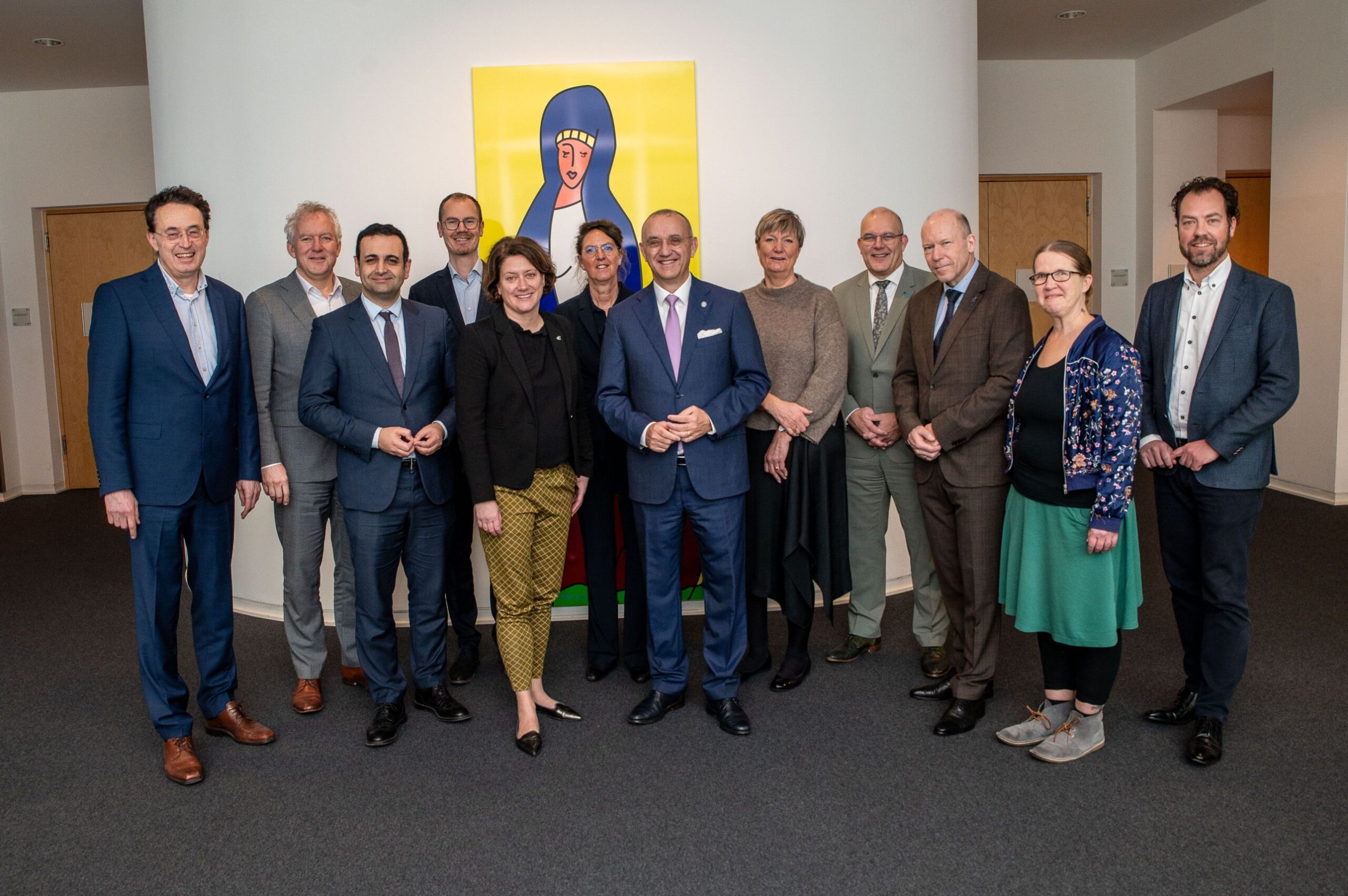 Landrätin Katharina Reinhold (5.v.l.) und Kreisdezernent Bijan Djir-Sarai (3.v.l.) begrüßten die Delegation der Vereinigung niederländischer Gemeinden im Kreishaus Neuss. | Foto: S. Büntig/ Rhein-Kreis Neuss