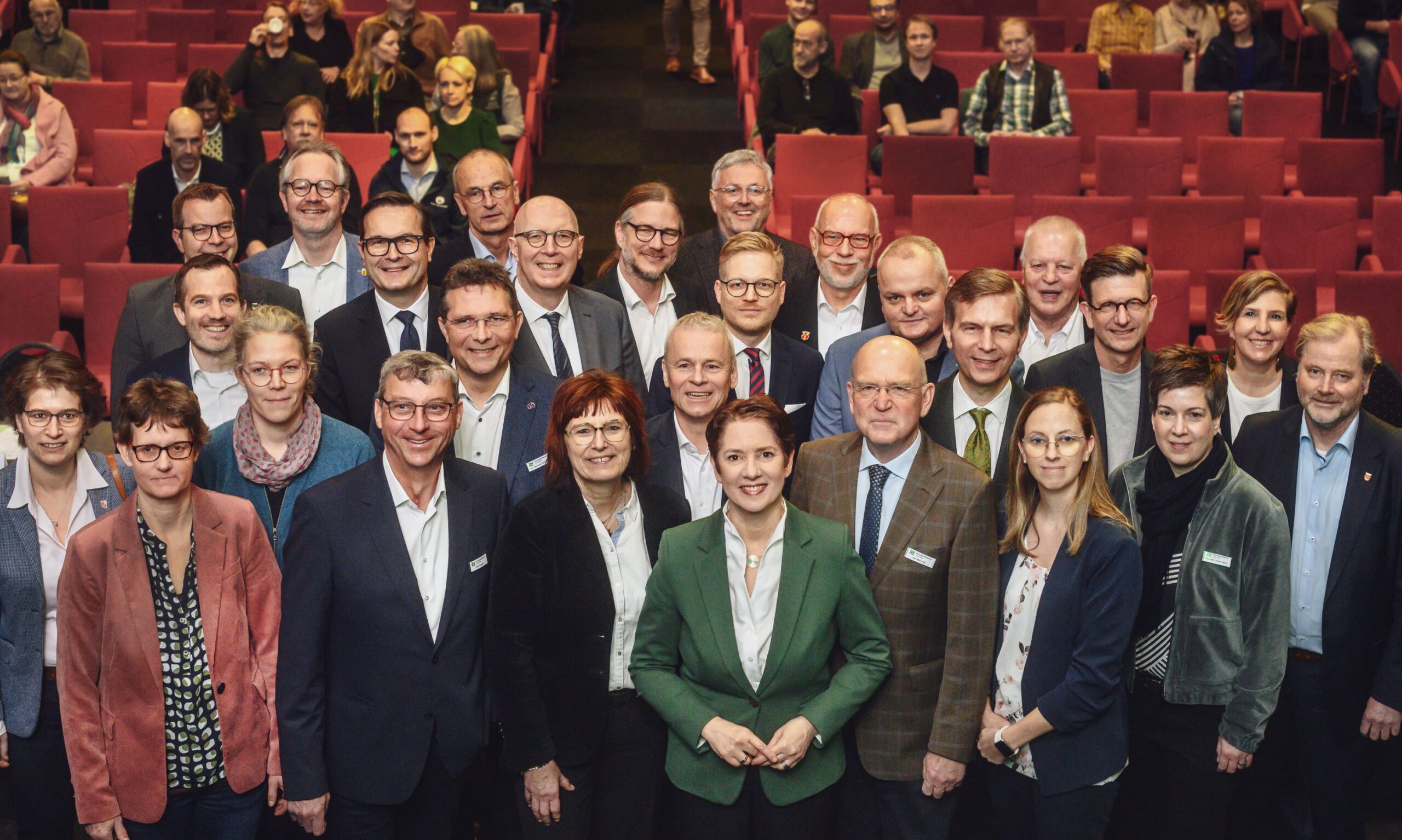 Beim 5. Agrar-Forum Niederrhein im Wunderland Kalkar:  Silke Gorißen (vorne Mitte), Ministerin für Landwirtschaft und Verbraucherschutz des Landes Nordrhein-Westfalen, eingerahmt von Vertreterinnen und Vertretern aus Politik, Verwaltung, Verbänden, Veranstaltenden und Podiumsgästen. | Foto: WFG Kreis Kleve