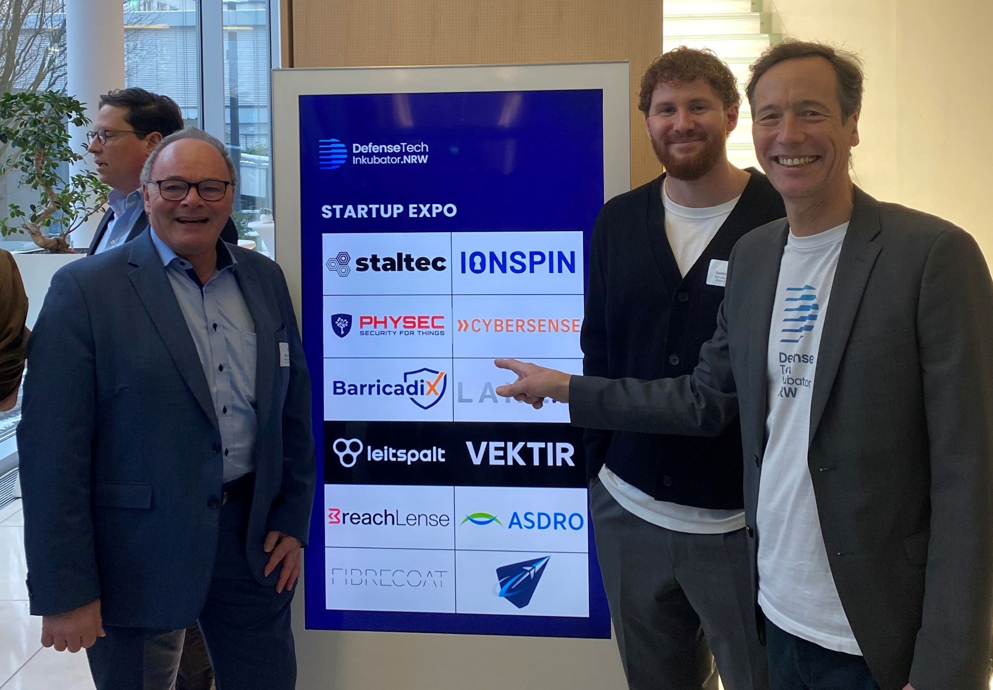 Mit den Start-ups Staltec und Vektir waren zwei Start-ups aus dem Rhein-Kreis Neuss unter den Ausstellern vertreten. Das Meerbuscher Start-up Vektir entwickelt Lösungen für die Drohnenidentifikation und ist Bestandteil des Start-up-Ökosystems des Kreises. Staltec entwickelt technische Beschichtungen für Produktionsanlagen der Stahlindustrie und hat seinen Sitz im Impuls-Werk des Rhein-Kreises Neuss. Zuletzt setzte sich Staltec im Final Pitch der achten Runde von „accelerate.RKN“ durch. Dabei handelt es sich um das Accelerator-Programm des Rhein-Kreises Neuss. Mit dem Förderprogramm unterstützt der Rhein-Kreis Neuss Gründerinnen und Gründer bei der Entwicklung ihrer Start-ups und begleitet sie auf dem Weg von der Idee zum marktfähigen Produkt. Ziel von „accelerate.rkn“ ist es, den Wirtschaftsstandort weiter zu stärken. Weitere Informationen hierzu gibt es hier.